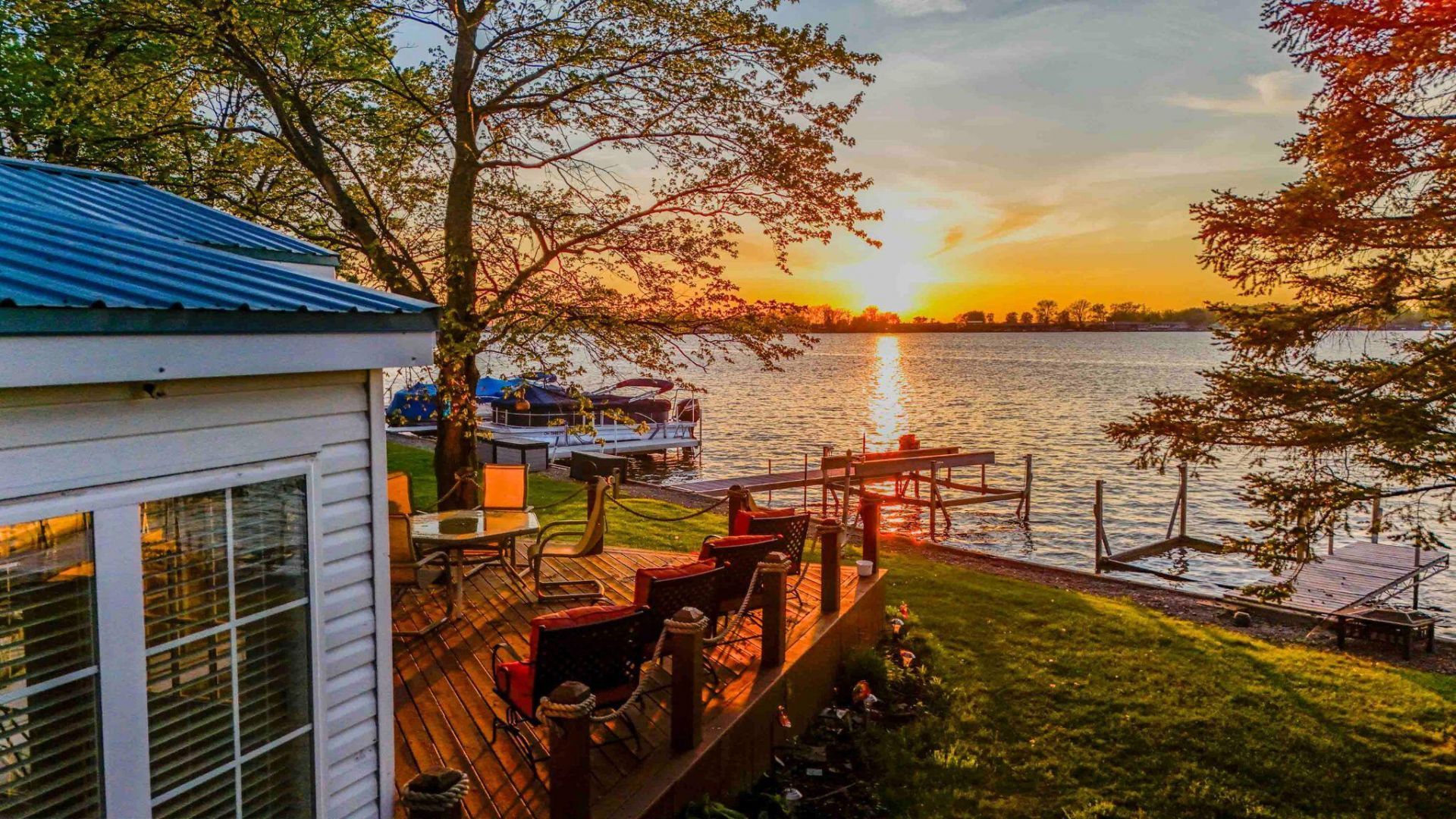 Welcome to 8651 S R 368 34-B, Huntsville, OH (Lakeridge Mobile Home Park). Start each day on your large wood deck with a cup of coffee taking in the expansive waterfront views, and end your days with some of Indian Lakes best sunsets! Outside just off the deck is a double sided dock, one side has a pontoon lift. (Included is a 1990 Sylvan 24ft Pleasure Deck pontoon with a 2016 90HP Suzuki outboard). Inside this inviting 2-bedroom, 1-bath home (New metal roof 2025) youll notice serene waterfront views through the wall of windows in the sunroom & Livingroom both, allowing great views out to the lake while letting plenty of natural light and breezes in. The sunroom allows for extra seating/sleeping and is just off the living room/dining room/kitchen, providing ample space to host friends and family to partake in all that LAKE LIFE has to offer. Local state parks, boat ramps, dining, and shopping are just minuets away by boat or car. This home would be ideal for full-time living or as a weekend retreat alike. Your Lake Life is waiting, call today!